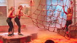 Teams compete to navigate rooms flooded with lava by leaping from chairs, hanging from curtains and swinging from chandeliers.